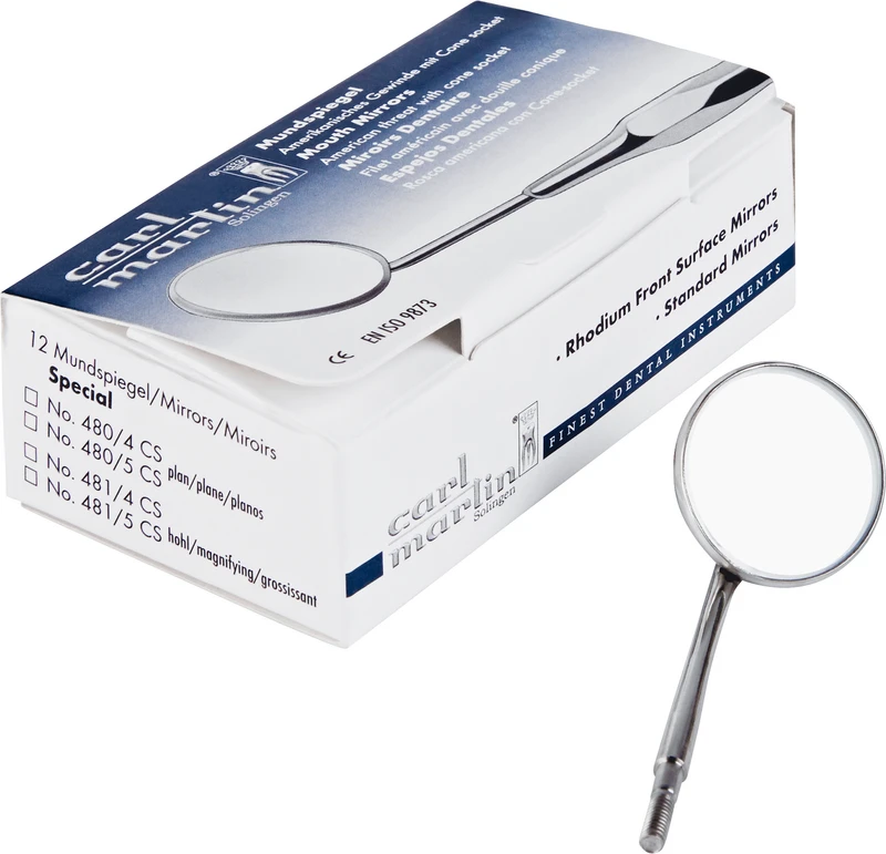 Produktinformationen "Mundspiegel Packung 12 Stück Ø 24 mm, plan, Rhodium-Effekt"