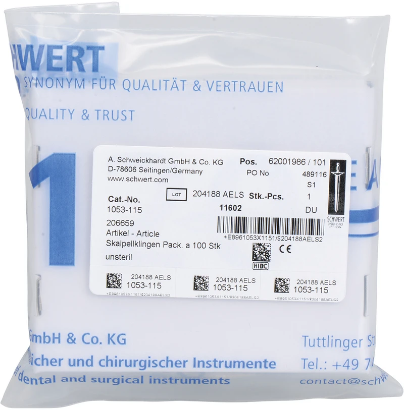 Produktinformationen "Skalpellklingen Packung 100 Stück Figur 15"