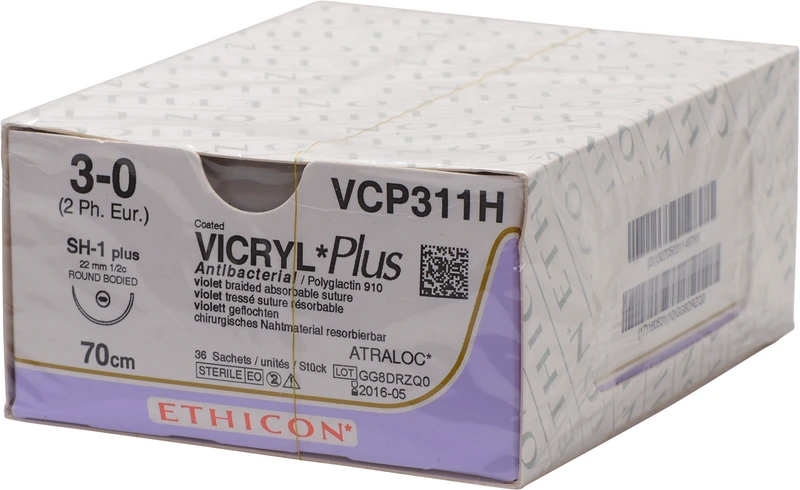 VICRYL Plus ist ein synthetisches, resorbierbares Nahtmaterial mit einer polyfilen Struktur. Dieses antiseptisch beschichtete Nahtmaterial mit Triclosan zeigt eine Reduzierung des Risiokos von postoperativen Wundinfektionen.