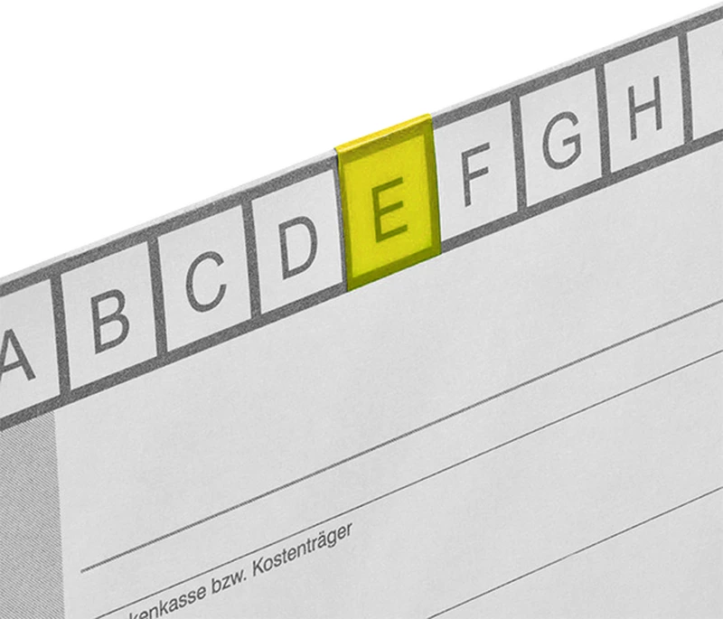 Vorteil: Die selbstklebenden Etiketten sind gut zu erkennen, wenn die Kartei in Schränken steht und nur die Sicht von oben möglich ist. Außerdem lassen sich die Etiketten bei Namensänderung lösen.