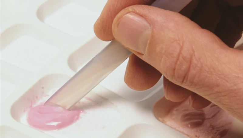 Achatinstrument zum Mischen von Keramikmassen. Keine Verunreinigung der Keramik durch Metallbetrieb von Instrumenten. Einsatz von beiden Enden möglich.