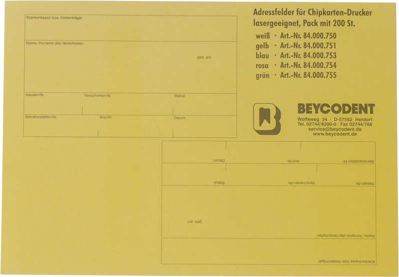 Adressfeld 750 für Chipkartenausdruck Packung 200 Stück gelb
