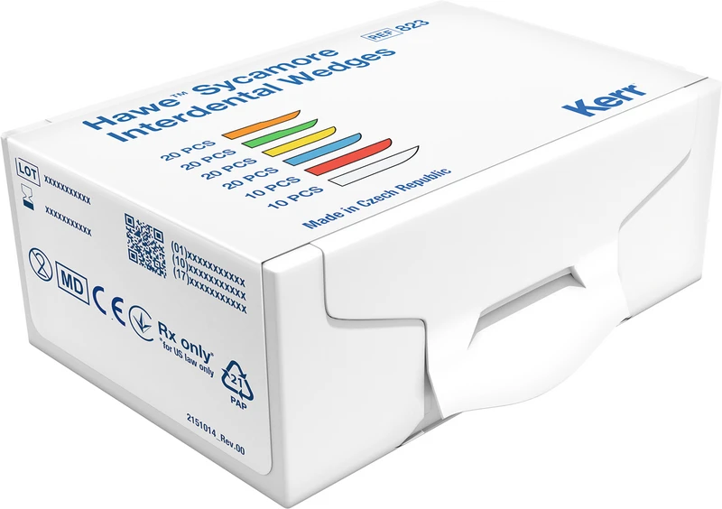 Ahorn-Interdentalkeile sind anatomisch optimal geformt. Die konkav gestalteten Seitenflächen passen sich ideal der interdentalen Morphologie an. Das rechteckige Ende ermöglicht ein sicheres Halten des Keiles, die aufgebogene Spitze verhindert ein Verletzen der Papillen. Die Interdentalkeile sind aus splitterfreiem Ahornholz gefertigt, das Stabilität und Komprimierbarkeit und damit eine optimale Anpassung an den Zahn gewährleistet. Farbcodiert.
