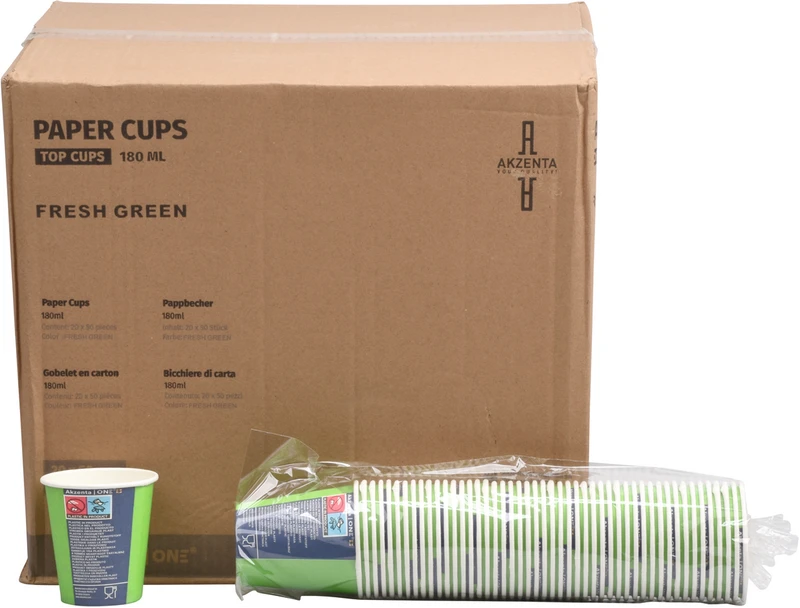 Produktinformationen "Akzenta ONE Pappbecher Karton 20 x 50 Stück fresh green, 180 ml"