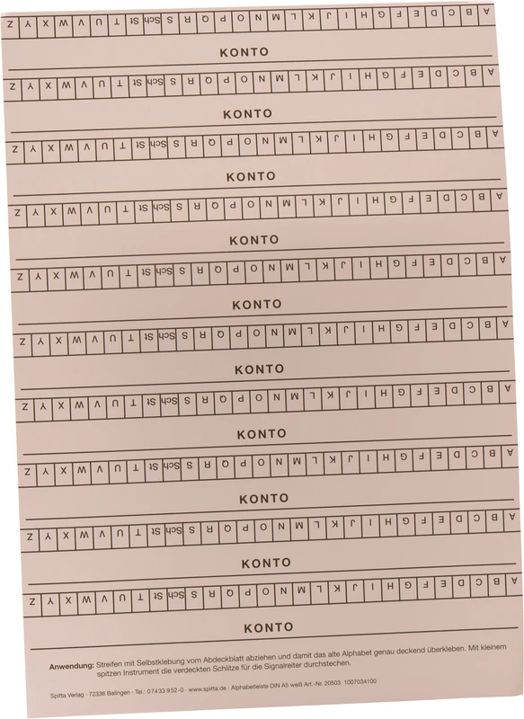 Gut klebende, robuste Alphabetleisten für die Karteikarten helfen Ihnen die Karteikarte Ihres Patienten schnell wieder auf den aktuellen Stand zu bringen. Die einzelnen Buchstaben des Nachnamens können farblich markiert werden und erleichtern somit das Einsortieren der Karteikarte in Ihr Karteikartensystem.