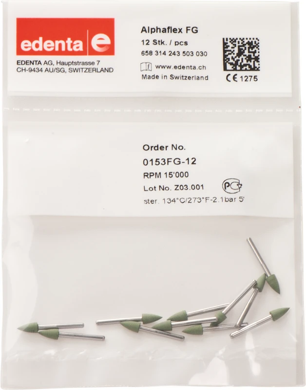 Packung 12 Polierer grün, FG, Figur 243, Kopflänge: 6 mm, ISO 030