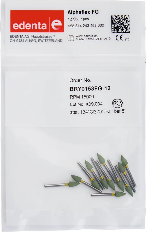 Packung 12 Polierer supergrün, FG, Figur 243, Kopflänge: 6 mm, ISO 030