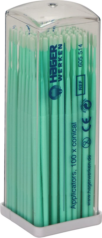 Zur punktgenauen Applikation von Flüssigkeiten und Pasten. Abknickbare Enden für schwer zugängliche Zonen. Sparsamer Umgang mit teuren Materialien (wie Bonding, Arzneimittel etc.). Säurefest gegen Bondings und andere Materialien. Hygienische Spenderpackung zur Einzelentnahme. In drei Größen erhältlich.