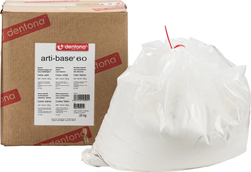 arti-base® 60 ist ein schnell abbindender Spezial- Artikulationsgips (Montagegips) mit erhöhter Klebekraft für die präzise Montage von Modellen im Artikulator.