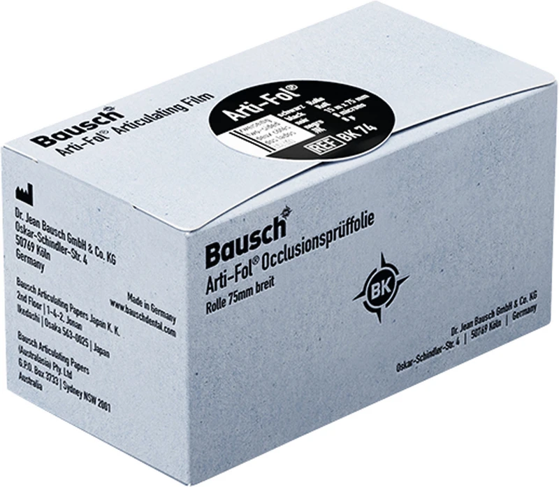 Artikulationsfolie 8 µ besonders gut zur Darstellung der statischen und der dynamischen Occlusion in mehreren Farben geeignet. Arti-Fol® metallic 8 µ markiert präzise auch feuchte Occlusalflächen. Ermöglicht ein effizientes Einschleifen, auch bei Relaxierungs- und Occlusionsschienen (Bruxismus).