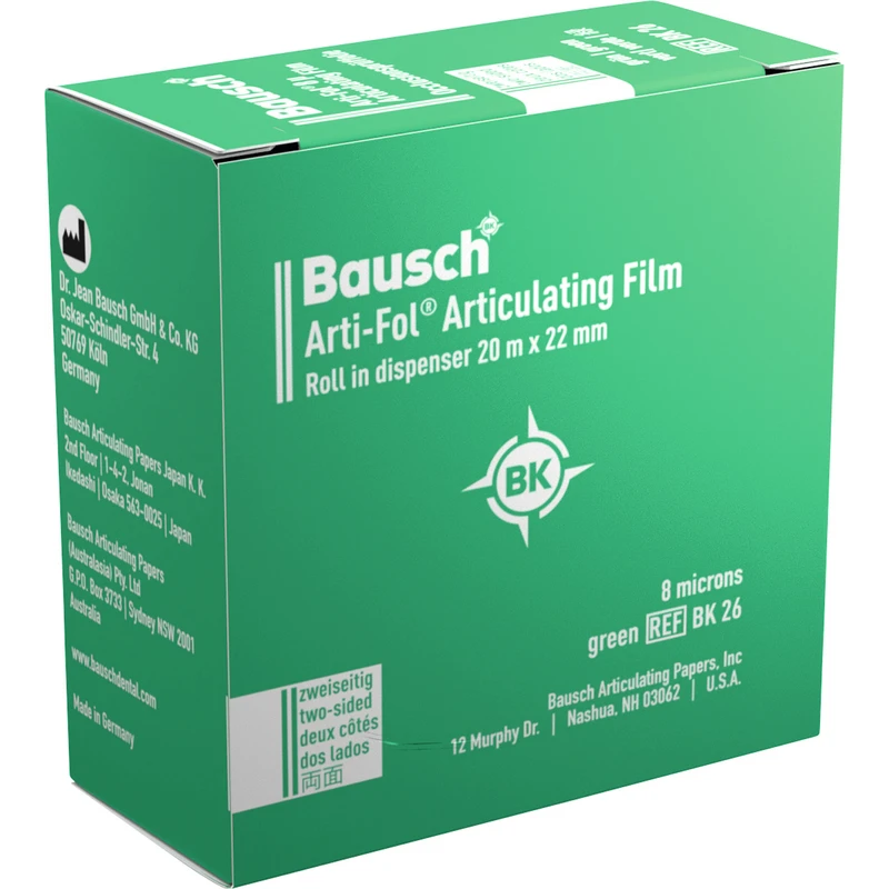 Artikulationsfolie 8 µ besonders gut zur Darstellung der statischen und der dynamischen Occlusion in mehreren Farben geeignet. Arti-Fol® metallic 8 µ markiert präzise auch feuchte Occlusalflächen. Ermöglicht ein effizientes Einschleifen, auch bei Relaxierungs- und Occlusionsschienen (Bruxismus).