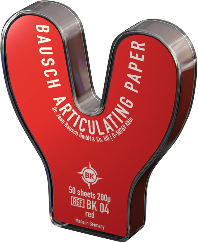 Produktinformationen "Artikulationspapier 200 µ Plastik-Spender 50 Stück rot, Hufeisenform, BK 04"