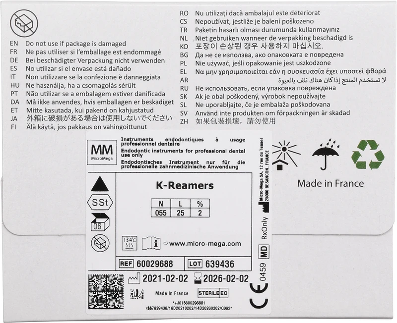 Produktinformationen "B6 K-Reamers Packung 6 Stück 25 mm, ISO 055"