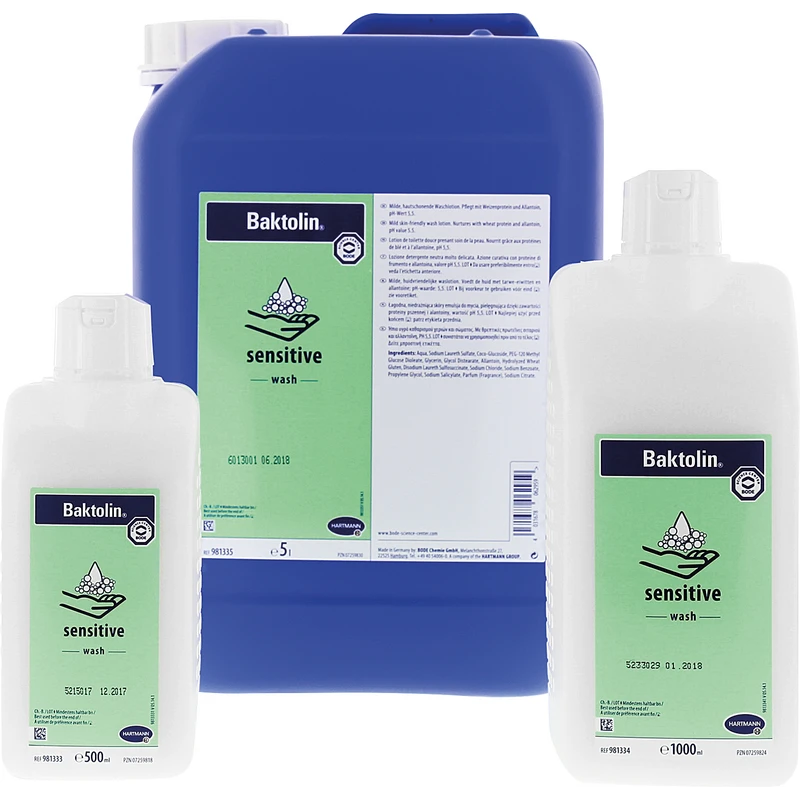 Baktolin® sensitive eignet sich für empfindliche und - strapazierte Haut. Die pflegenden Bestandteile Allantoin und Weizenprotein halten die Haut auch bei intensiver und täglich wiederholter Anwendung glatt und geschmeidig. Der pH-Wert von 5,5 schont den empfindlichen Säureschutzmantel der Haut.