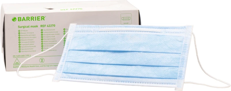 Produktinformationen "BARRIER® OP-Maske Standard Packung 50 Stück blau, mit Ohrschlaufen, geringer Atemwiderstand, Basic"