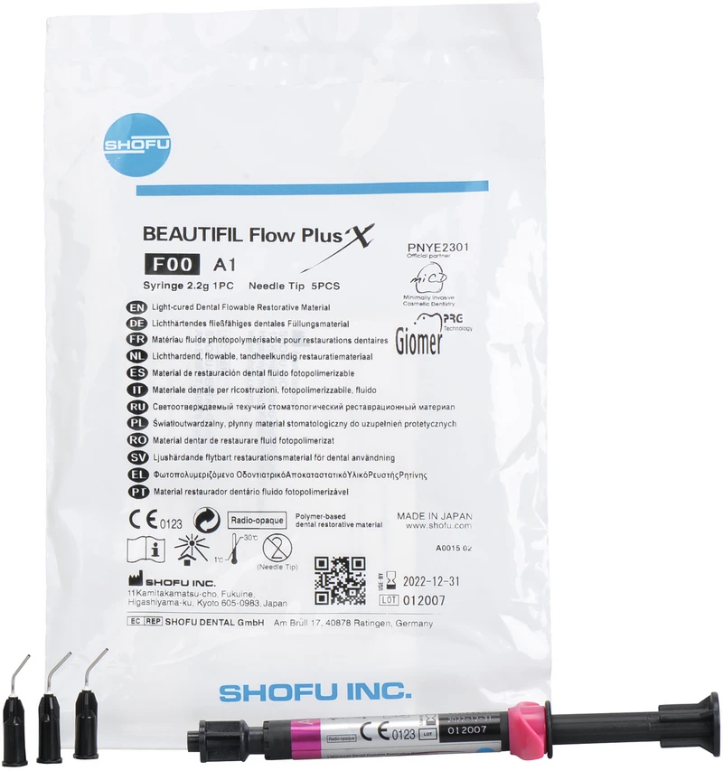 BEAUTIFIL Flow Plus X Spritze 2,2 g A1, F00 inklusive 5 Spritzenaufsätze