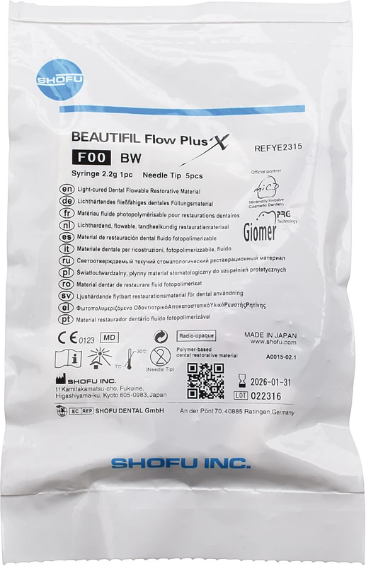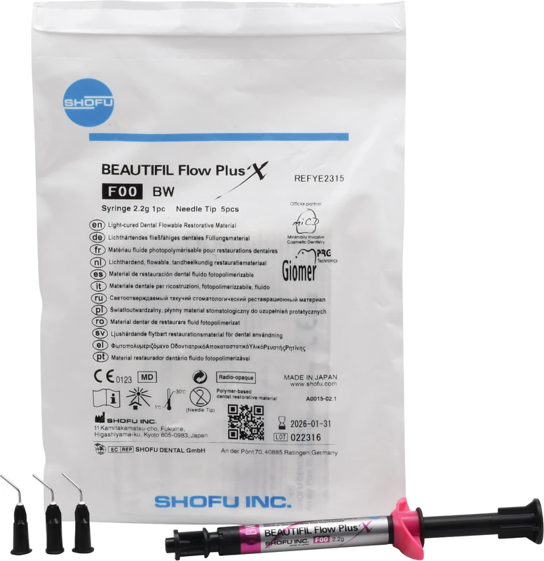 BEAUTIFIL Flow Plus X Spritze 2,2 g BW, F00 inklusive 5 Spritzenaufsätze