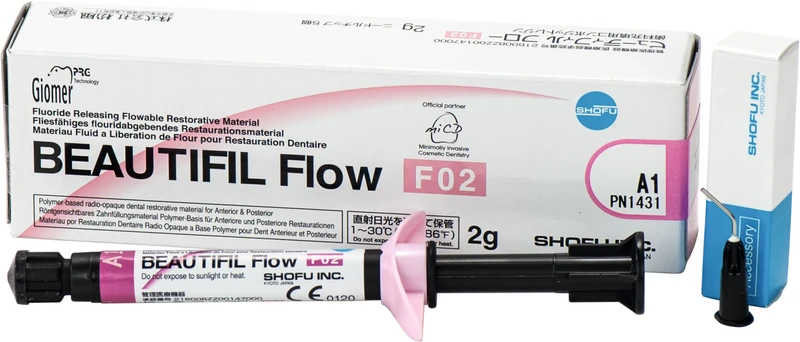 Beautifil Flow - Die fließfähige Ergänzung zu Beautifil II in einer leicht- und einer zähfließenden Variante. Mit diesen zwei Viskositätsstufen wird der Indikationsspielraum in idealer Weise erweitert. Beautifil F02 ist zähfließend und Beautifil F10 ist leichtfließend eingestellt.