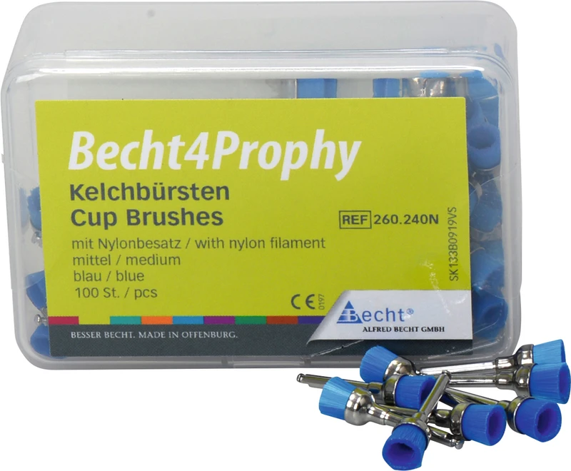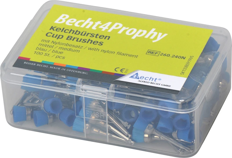 Becht4 Prophy Kelchbürsten Box 100 Stück blau mittel, mit Nylonbesatz, RA