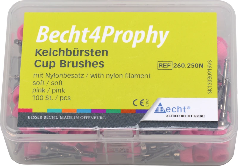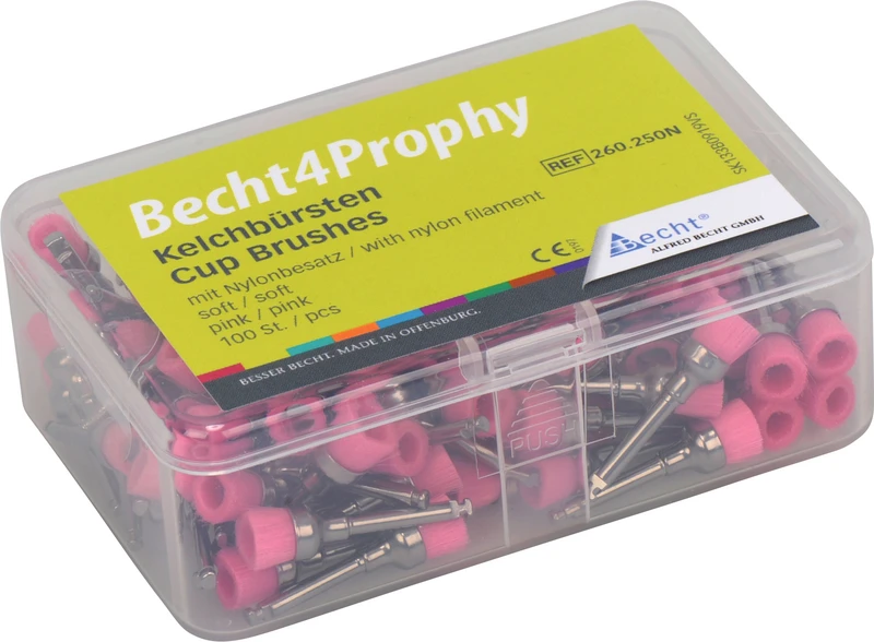 Becht4 Prophy Kelchbürsten Box 100 Stück pink soft, mit Nylonbesatz, RA