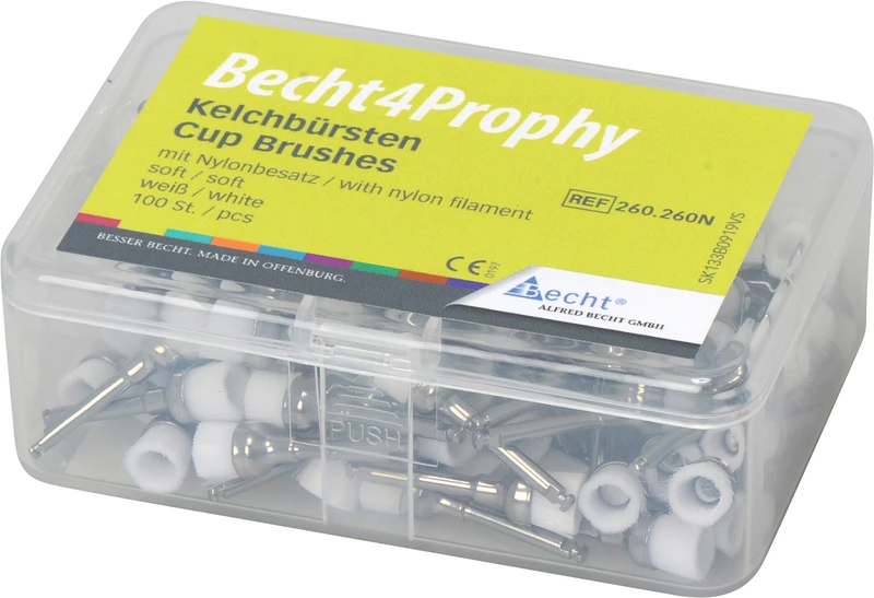 Becht4 Prophy Kelchbürsten Box 100 Stück weiß soft, mit Nylonbesatz, RA