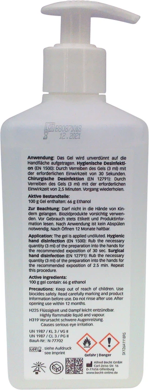 Alkoholhaltiges, antiseptisches Gel für die hygienische und chirurgische Händedesinfektion.