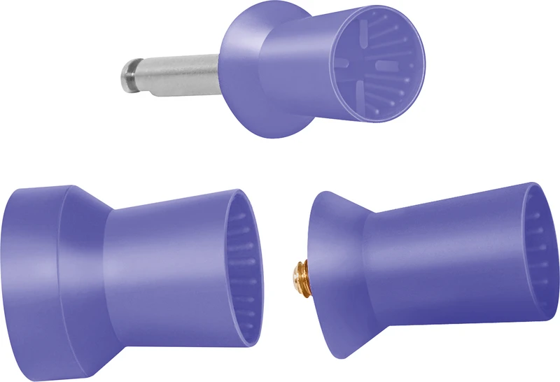 In unterschiedlichen Ausführungen und Härtegraden verfügbar (blau/weich, lila/mittel, gelb/hart). Ein Spritzschutz an der Schulter der Polierer verhindert zusätzlich das Eindringen von Polierpaste in das Winkelstück.