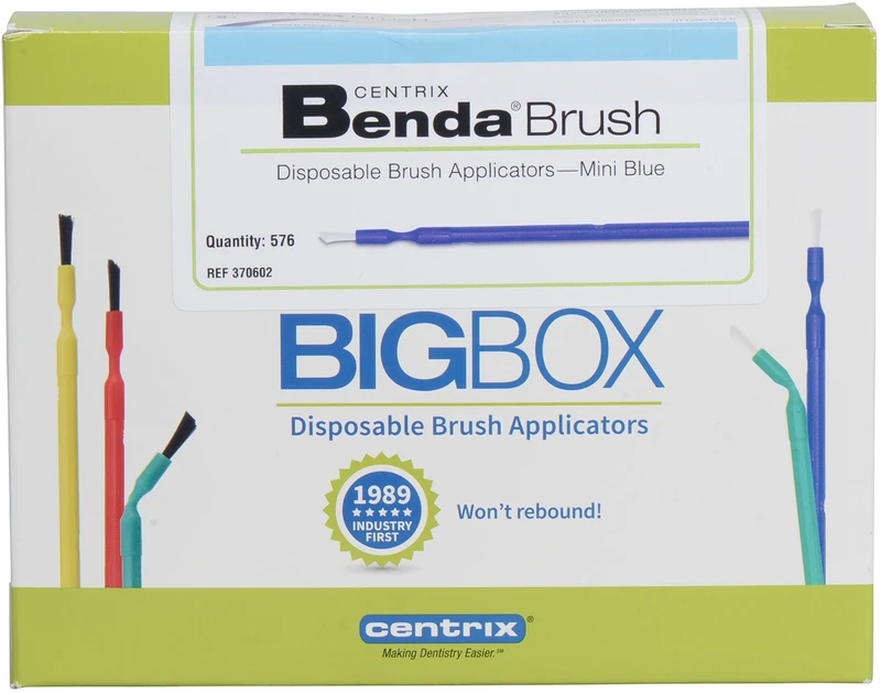 Benda® Brush Applikatoren sind die originalen biegbaren Brush Applikatoren. Normalerweise verwendet mit Aufhellungs-, Ätz-, Bondingmitteln, Versieglern, Desensibilisierern, Adhäsiven und Kompositen. Zubehör für Onyx Ätzgel.