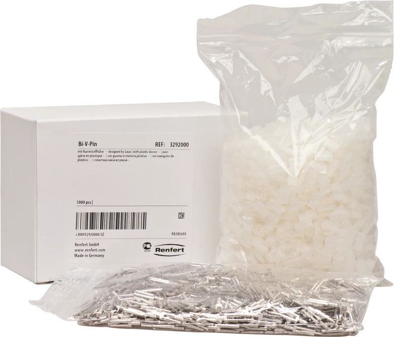 Produktinformationen "Bi-V-Pin Packung 1.000 Stück Kunststoff, Kopf 2 mm, Stiftlänge 12,5 mm, Kopflänge 5,5 mm, Breite 3,8 mm"