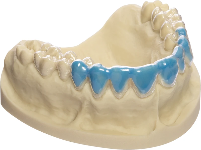 BioBleach® soft Tiefziehfolie aus Ethyl-Vinylacetat Copolymerisat zur Anfertigung von weichen, über den Gingivalsaum hinausreichenden Bleaching-/Medikamentenschienen.