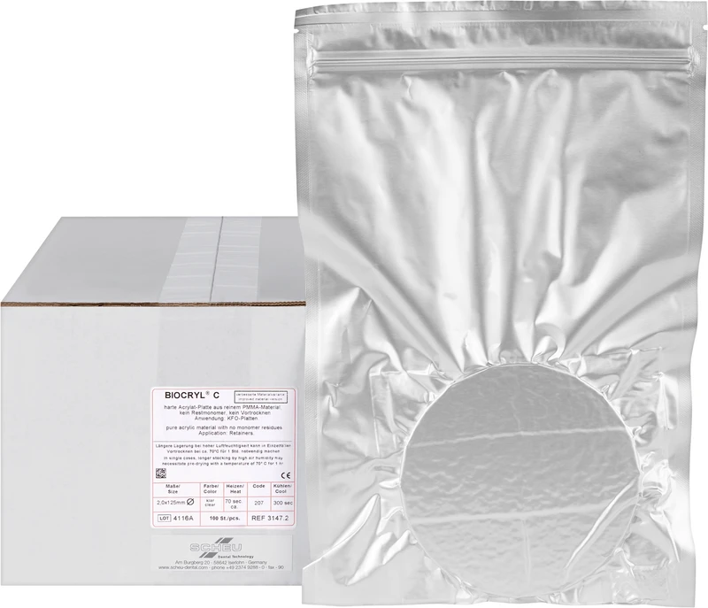 BIOCRYL® C Packung 100 Stück klar, Ø 125 mm, Stärke 2 mm