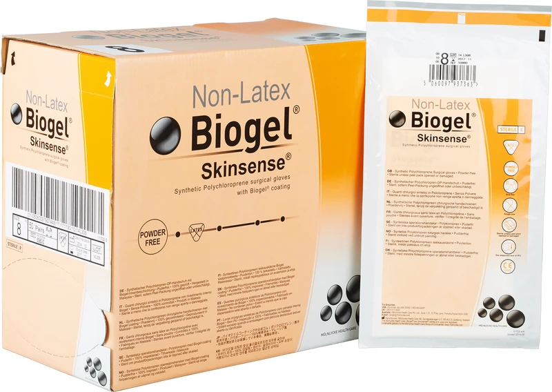 Der synthetische (Naturkautschuklatex-freie) Biogel® Skinsense® OP-Handschuh aus Polychloropren wurde speziell für alle allgemeinchirurgischen Eingriffe entwickelt, an denen latexsensible Personen beteiligt sind. Er kann einzeln oder im Rahmen eines Biogel Perforationsindikationssystems mit doppelter Behandschuhung getragen werden.Biogel® Skinsense® wird für Eingriffe empfohlen, bei denen eine längere Permeationszeit gewünscht ist. Wir empfehlen Biogel Skinsense ebenfalls beim Umgang mit Zytostatika und Knochenzement. In diesen Fällen empfehlen wir eine Kombination mit dem Biogel Skinsense Indicator Underglove für zusätzlichen Schutz.Konsultieren Sie stets die Tabelle mit den Permeationszeiten, um spezifische Details zu jeder Chemikalie zu erhalten.