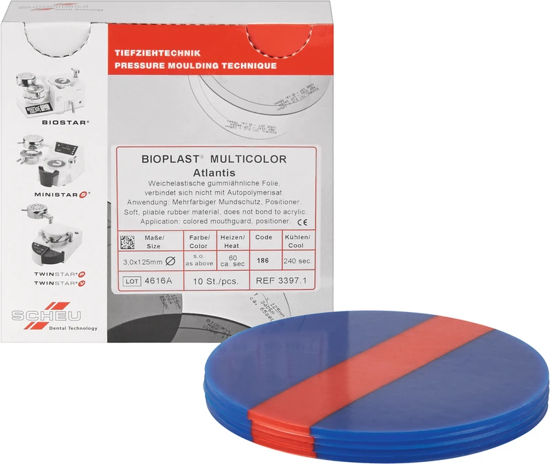 BIOPLAST® MULTICOLOR Packung 10 Stück Ø 125 mm, Stärke 3 mm, atlantis