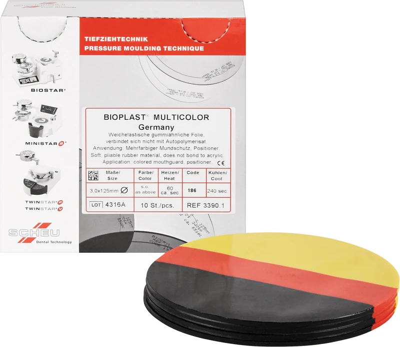 BIOPLAST® MULTICOLOR Packung 10 Stück Ø 125 mm, Stärke 3 mm, germany