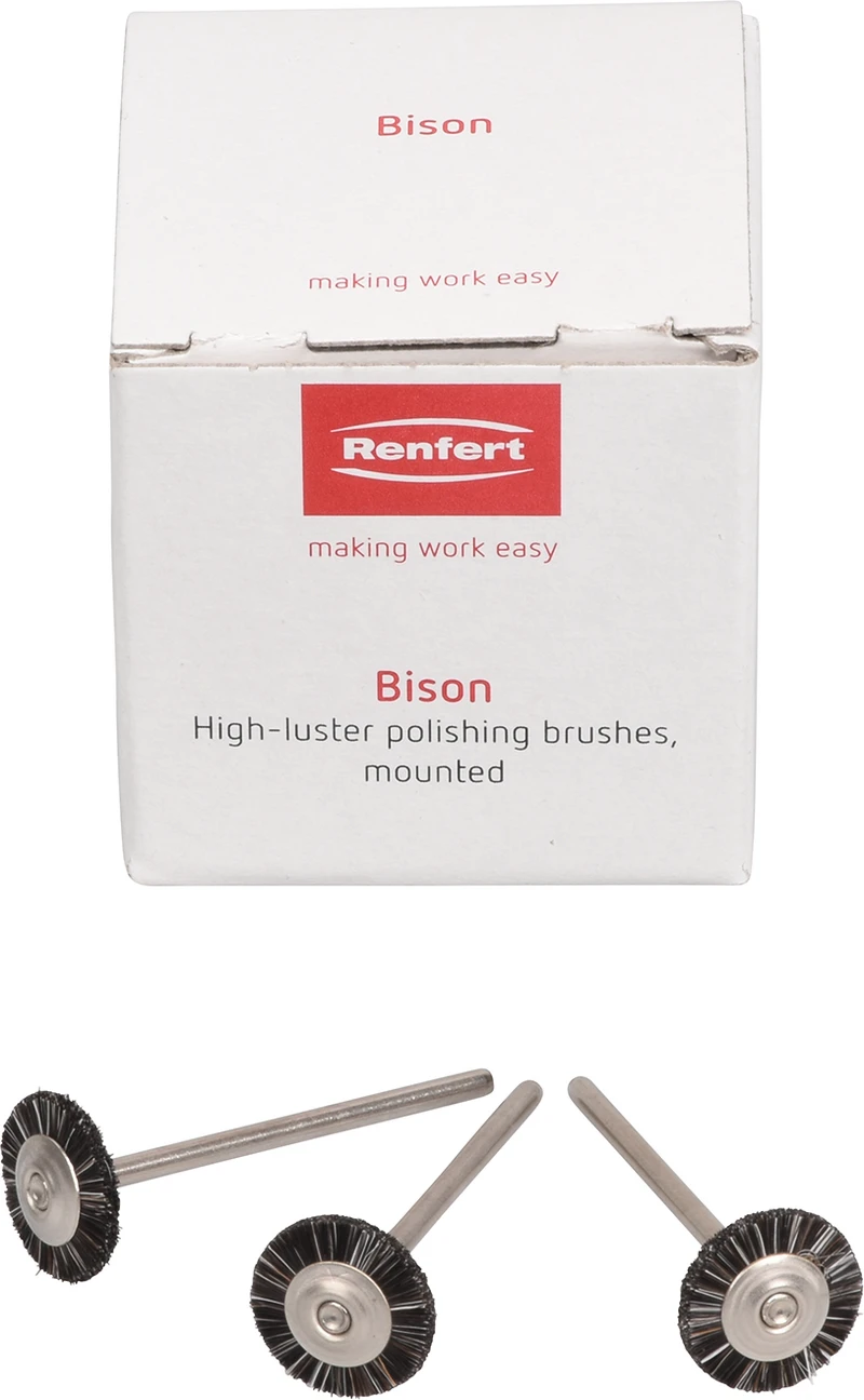 Montierte Hochglanzbürstchen in zwei Durchmessern für die Politur am Handstück. Die einzigartige Haarmischung sorgt für eine kräftige und schnelle Hochglanzpolitur auf Legierungen, Keramik und Verblendkunststoffen.