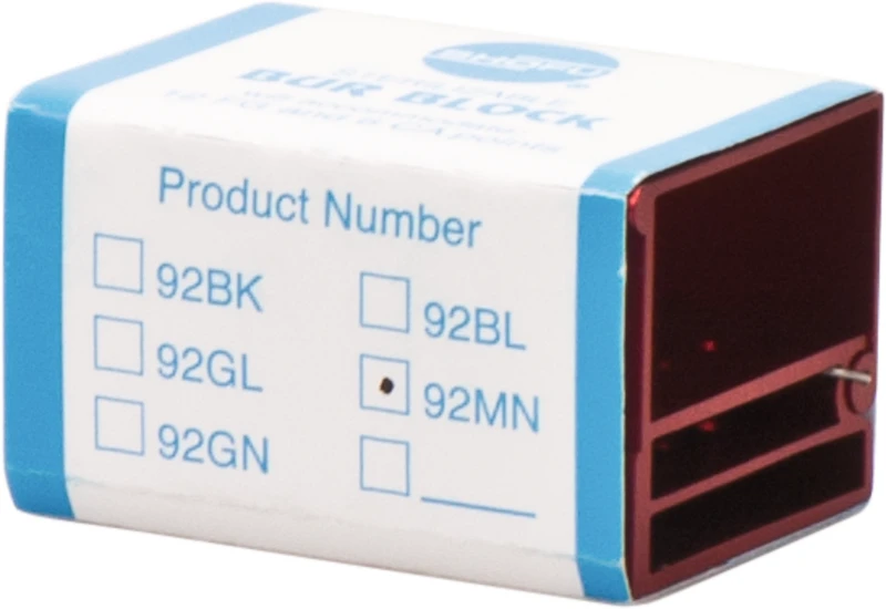 Der praktische Schnappverschluss des Bur Block schützt die aufgenommene Sortierung der Instrumente; die offenen Seiten ermöglichen ein vollständiges Desinfizieren und Sterilisieren von bis zu 18 Instrumenten (12x FG und 6x RA). Je nach Arbeitsfeld (Kavitätenpräparationen etc.) lässt sich so ein eigener farbcodierter Instrumentensatz erstellen.