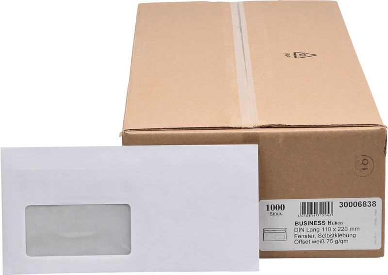 Produktinformationen "Briefhüllen Packung 1000 Stück mit Fenster, A4"