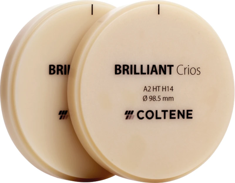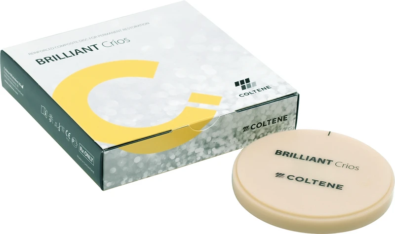 BRILLIANT Crios ist ein Hochleistungs-Komposit Block. Das Material kombiniert alle Vorteile eines innovativen Submicron-Hybrid-Composite-Werkstoffs mit denen eines CAD/CAM Herstellungsverfahrens für die zuverlässige, ästhetische und schnelle Produktion von Restaurationen ohne separaten Brennvorgang. BRILLIANT Crios Discs erweitern das bestehende CAD/CAM Portfolio von COLTENE. Die Discs haben exakt die gleiche Zusammensetzung wie die Blöcke und damit den gleichen hohen Qualitätsstandard, lediglich in anderer Form. Die Discs sind insbesondere für häufige CAD/CAM Anwender wie Labors oder Fräszentren von Interesse, da diese viel wirtschaftlicher sind und mehrere Restaurationen in einem Schleif-/ Frässchritt geschliffen werden können.