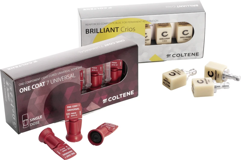 BRILLIANT Crios ist ein Reinforced Composite Block für permanente Restaurationen. Er wird mit CAD/CAM Geräten für die Chairside-Herstellung indirekter Restaurationen verwendet. BRILLIANT Crios wird in 9 Low- und 4 High-Transluzenzstufen in den Größen 14 und 12 angeboten und ist kompatibel mit Sirona Geräten (CEREC und inLab). Es ist geplant, mit weiteren Systemanbietern zusammen zu arbeiten.