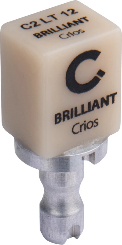 BRILLIANT Crios ist ein Reinforced Composite Block für permanente Restaurationen. Er wird mit CAD/CAM Geräten für die Chairside-Herstellung indirekter Restaurationen verwendet. BRILLIANT Crios wird in 9 Low- und 4 High-Transluzenzstufen in den Größen 14 und 12 angeboten und ist kompatibel mit Sirona Geräten (CEREC und inLab). Es ist geplant, mit weiteren Systemanbietern zusammen zu arbeiten.