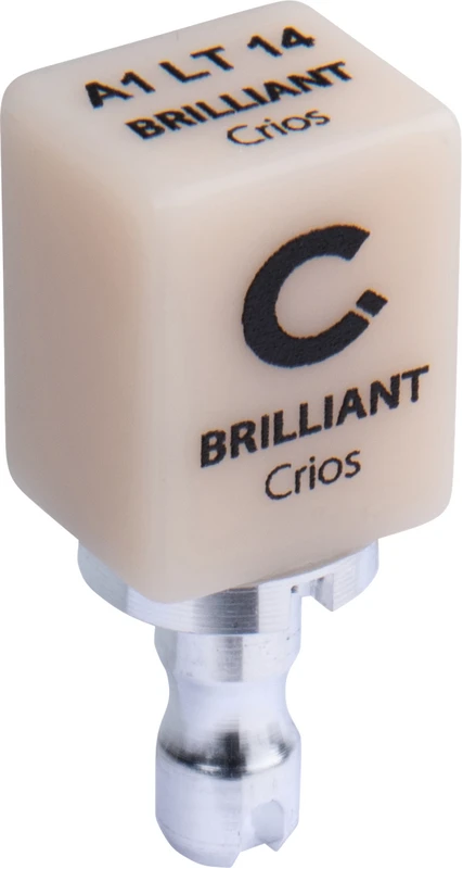 BRILLIANT Crios ist ein Reinforced Composite Block für permanente Restaurationen. Er wird mit CAD/CAM Geräten für die Chairside-Herstellung indirekter Restaurationen verwendet. BRILLIANT Crios wird in 9 Low- und 4 High-Transluzenzstufen in den Größen 14 und 12 angeboten und ist kompatibel mit Sirona Geräten (CEREC und inLab). Es ist geplant, mit weiteren Systemanbietern zusammen zu arbeiten.