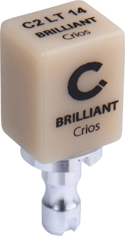 BRILLIANT Crios ist ein Reinforced Composite Block für permanente Restaurationen. Er wird mit CAD/CAM Geräten für die Chairside-Herstellung indirekter Restaurationen verwendet. BRILLIANT Crios wird in 9 Low- und 4 High-Transluzenzstufen in den Größen 14 und 12 angeboten und ist kompatibel mit Sirona Geräten (CEREC und inLab). Es ist geplant, mit weiteren Systemanbietern zusammen zu arbeiten.