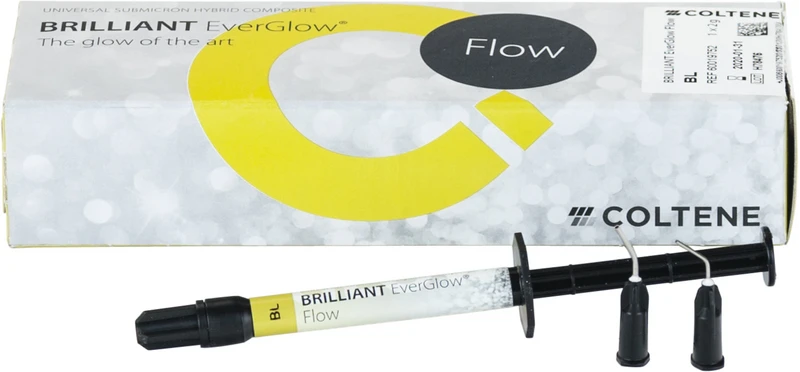 BRILLIANT EverGlow ist nun zusätzlich in einer fließfähigen Variante erhältlich. Das niederviskose Füllungsmaterial verbindet komfortables Applizieren mit gleichzeitig hoher Standfestigkeit. Ideal zum Auffüllen schwer erreichbarer Bereiche sowie zur Fissurenversiegelung. Die Flow-Variante kann material- und zeitsparend direkt aus der Spritze auf die gebondete Oberfläche aufgetragen werden. Bis zur Polymerisation lässt sich das unter Druck fließfähige Komposit in aller Ruhe an die gewünschte Position bringen.
