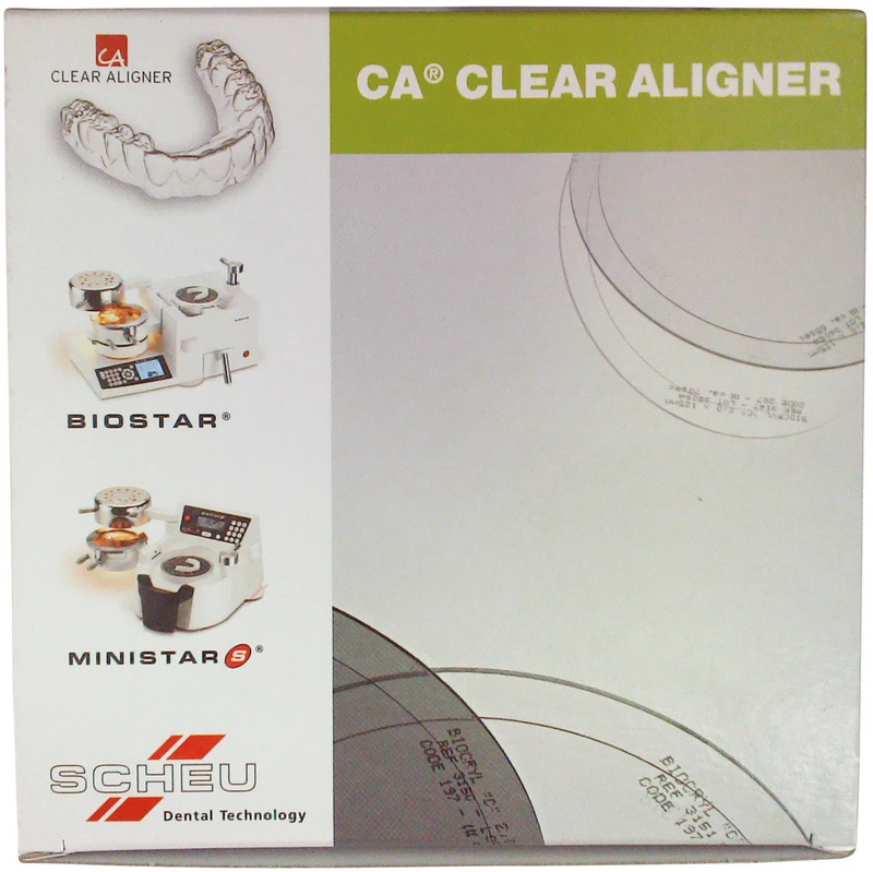 Hochwertige, transparente, hartelastische Folien für die schonend sanfte Korrektur von Zahnfehlstellungen mit ästhetischen Schienen nach dem CA® System. Alle Folien tragen die original CA® Kennzeichnung mit Stärkenangabe: extra soft (0,4 mm), soft (0,5 mm), medium (0,625 mm) und hard (0,75 mm).