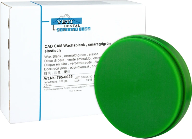 - Aus rückstandsfrei verbrennbarem und einbettmasseverträglichem Mikrowachs (temperaturstabilisiert)