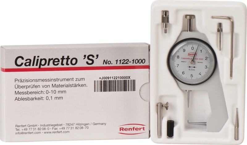 Messsystem zur präzisen Ermittlung von Wandstärken zahntechnischer Objekte. Zusätzlich zum Standard-Spitzenpaar sind zwei Austausch-Spitzenpaare erhältlich. Die modifizierten Messspitzen sind für Problemzonen wie beispielsweise im Inzisalbereich von Frontzahnkronen geeignet.