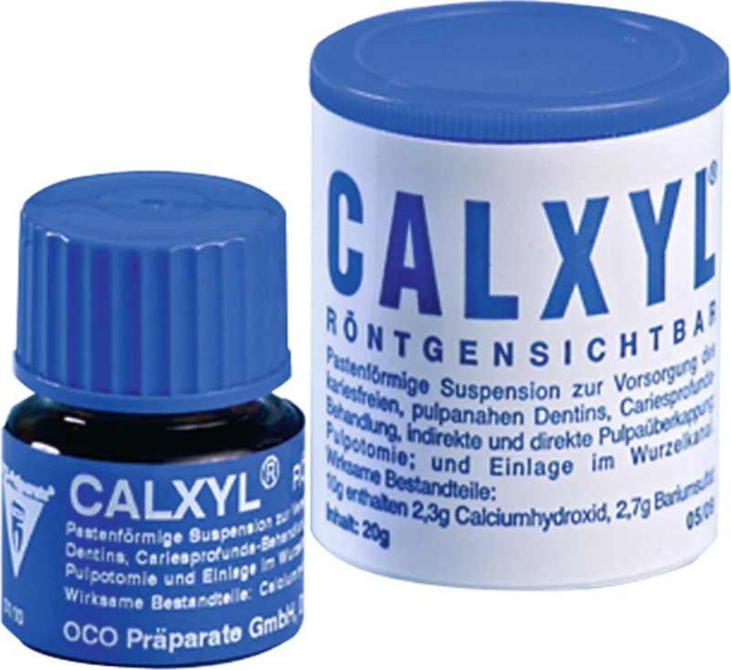 CALXYL® MTA. Röntgensichtbar: Ein hochwirksamer biokompatibler bakteriostatisch dichter definitiver endodontischer Reparatur-Zement der exzellente adhäsions und plastische Eigenschaften besitzt und Tertiärdentin ausbildet. Nach 5 Minuten bereit zum nächsten Behandlungsschritt. Zur Behandlung von: Ortho- und retrogradem Wurzelkanalverschluss, Verschluss von Wurzelperforation, direkte Pulpenüberkappung, Apexifikation und Pulpotomie.