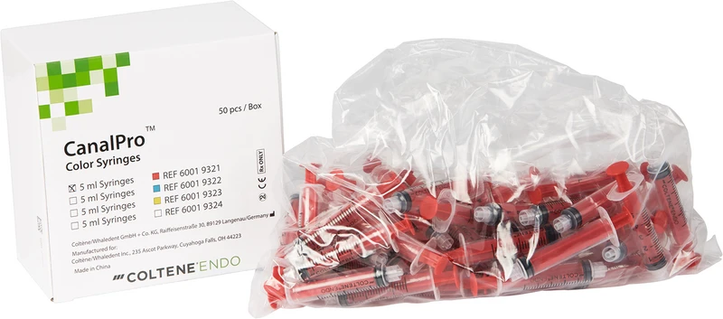 Die Spritzen werden zur Spülung des Wurzelkanals mit verschiedenen Spüllösungen verwendet. Das komplette CanalPro Spüllösungsportfolio ist farbkodiert, um ein Vertauschen der verschiedenen Spüllösungen zu vermeiden und den Spüllösungsprozess für Zahnärzte und ihre Mitarbeiter einfacher zu gestalten.