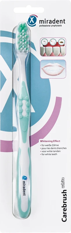 - Bürstenkopf mit speziellen Gummilamellen reinigt gründlich und bewirkt gleichzeitig eine natürliche Zahnaufhellung