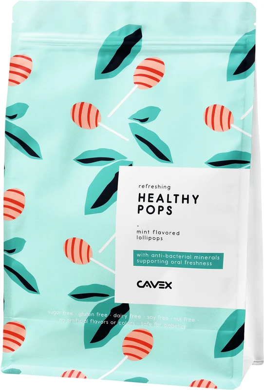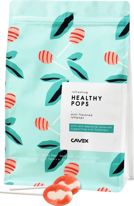 Cavex Healthypops sind zuckerfreie Lutscher mit Zahnfunktion. Die Cavex Healthypops basieren auf einer Mischung aus Polyolen kombiniert mit natürlichen Farb- und Geschmacksstoffen und einem Wirkstoff. Natürliche Polyole sind dafür bekannt, dass sie sicher für die Zähne sind und die Remineralisierung fördern. Der Verzehr von einem Cavex Healthypops pro Tag liefert ausreichend Erythrit, um Karies vorzubeugen.